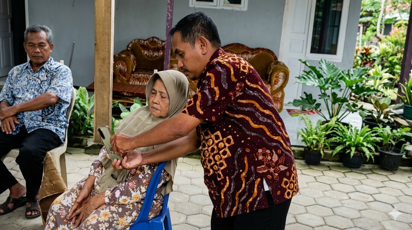 Kegiatan jemput bola ini melibatkan berbagai unsur, di antaranya perangkat desa, kader dasa wisma, serta pendamping sosial yang secara aktif membantu masyarakat dalam proses pelayanan.